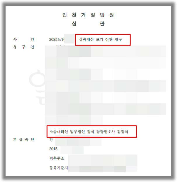 상속포기 심판청구 수리결정 승소사례