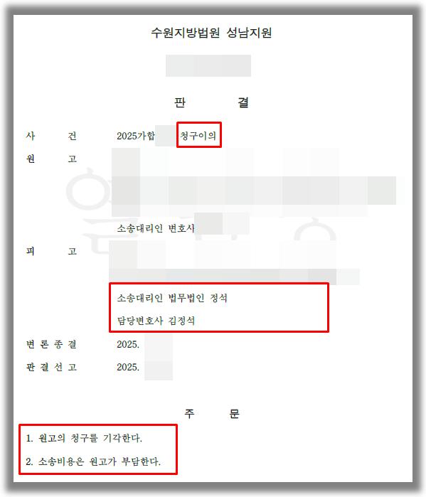 [민사] ‘청구에 관한 이의의 소에 대한 피고 승소사례’