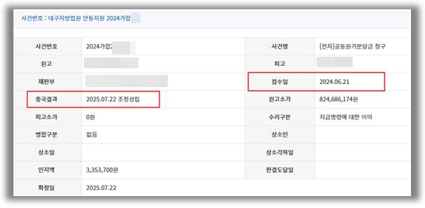 [사건의 개요]원고와 피고는 공동수급체로 이 사건 정비사업을 도급 받았고, 원고는 주관사로서 공사를 진행하되 피고는 공동수급체 비율에 따라 공동원가 분담을 하기로 약정하였습니다. 그런데 원고는 피고가 원고와의 공동원가분담의 약정에 따라 피고가 부담할 공동원가 공사비를 지급할 의무가 있으므로 원고에게 공사의 진행으로 발생한 공동원가 중 피고의 분담금 824,686,174원을 지급할 의무가 있다며, 피고를 상대로 공동분담금 청구의 소를 제기하였습니다.