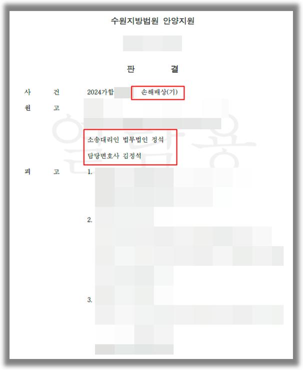 소송의 당사자들은 감정적인 소모가 심하기 때문에 재판과정에서 많은 고충을 받고 있습니다. 법무법인 정석은 이러한 고충을 알고 있기에 당사자들 간의 합의를 통해 최대한 빠른 결과를 얻기 위해 최선을 다하고 있습니다. 만약 소송 등 법률분쟁으로 인하여 고민하고 있으시면 [법무법인 정석]에서 상담을 받아보시고 해결하시는 것이 좋습니다.
