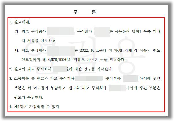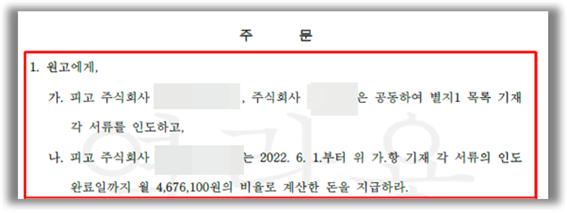 [법원의 판단]법원은, 원고의 피고1, 피고2에 대한 청구는 이유가 있다며, 피고1. 및 피고2는 공동하여 원고에게 위 사용승인에 필요한 각 서류를 인도하고, 하도급업체인 피고1은 위 각 서류의 인도 완료일까지 월 4,676,100원의 비율로 계산한 돈을 지급하라는 원고 승소 판결을 하였습니다.