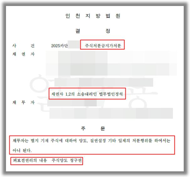 [민사] 주식처분금지가처분 인용결정 승소사례