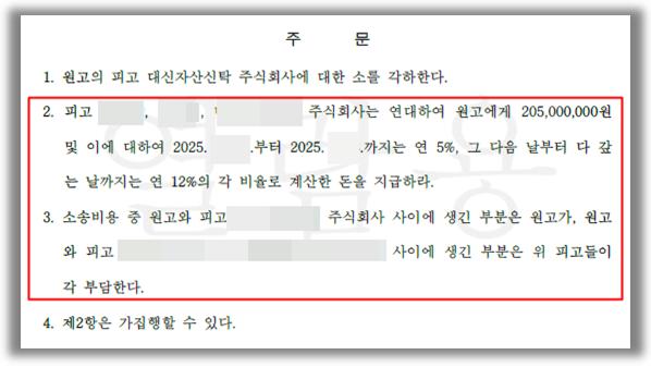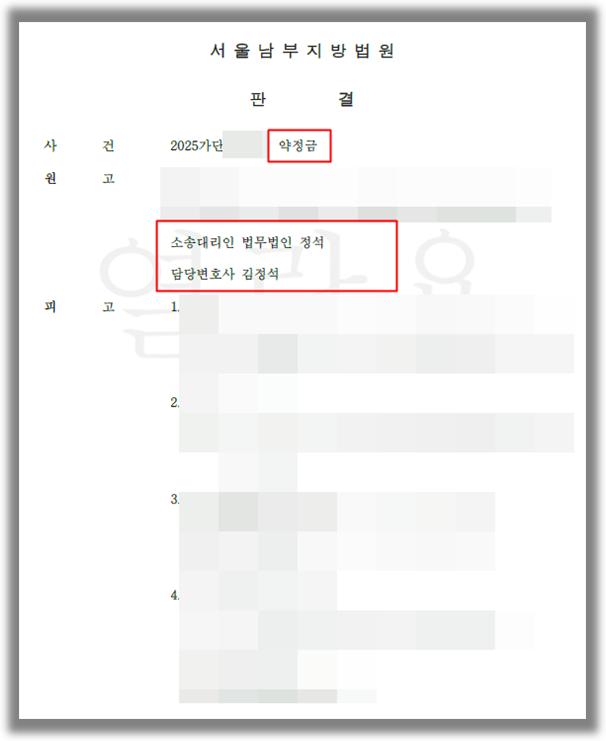 법무법인 정석은 상대방이 새로운 합의의 유효성을 주장하며 채무 이행을 지연시키는 논리를 타파하기 위해, 의뢰인이 발송한 내용증명과 상대방 사무실 방문 당시의 정황을 면밀히 재구성하였습니다. 상대방이 담보 제공 조치를 취하지 않은 점을 실기한 채무불이행으로 규정하고, 이를 이유로 한 해제권 행사가 유효함을 입증하였습니다. 특히 단순히 돈을 달라는 주장에 그치지 않고, "합의 해제에 의한 종전 확약의 소급적 부활"이라는 정교한 법리를 적용하여 연대보증인들의 책임까지 묶어낸 점은 본 사건의 결정적인 승소 요인이었습니다. 또한 신탁 관계의 복잡함을 고려하여 실질적 변제 자력이 있는 시공사와 개인들을 연대보증인으로 적극 포섭하여 판결의 실효성을 높였습니다. 이번 승소 판결을 통해 의뢰인은 무산될 뻔한 인테리어 지원금 2억 500만 원에 대한 집행 권원을 확보하였을 뿐만 아니라, 소송 촉진 등에 관한 특례법에 따른 연 12%의 지연이자를 인정받아 실질적인 자산 가치를 온전히 보전하게 되었습니다. 또한 연대보증인인 법인과 개인들 모두에게 책임을 물음으로써 향후 강제집행 과정에서 채권 회수의 가능성을 극대화하였습니다.