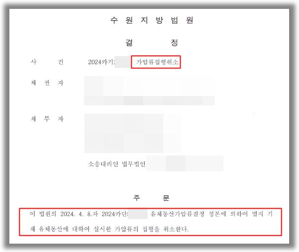 그런데 채무자는 해방공탁금을 법원에 공탁하여 가압류집행의 취소를 신청하였고, 이에 법원은 가압류집행취소결정을 받았습니다.