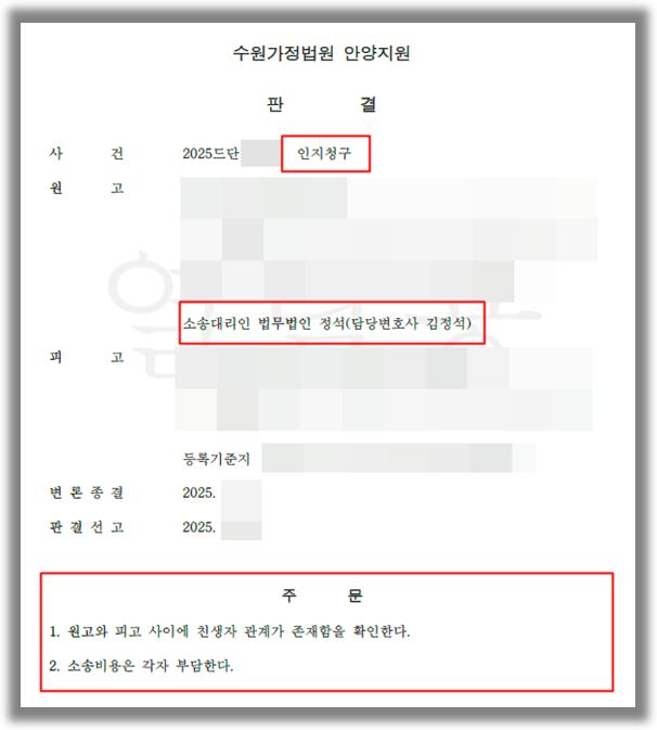 오늘은 [법무법인 정석]에서 ‘친생자관계 존부 청구’ 승소사례를 전해드리겠습니다.