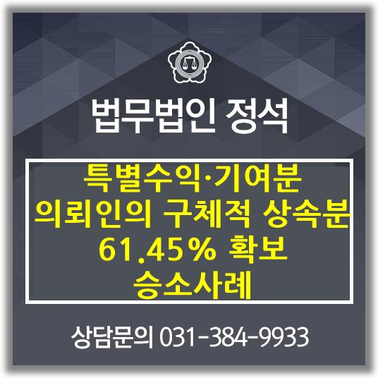 상속재산분할 심판 : 특별수익·기여분 쟁점에서 의뢰인의 구체적 상속분 61.45% 확보 승소사례