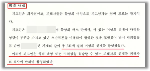 [사건의 개요]의뢰인인 피고인은 자신의 휴대폰 카메라 기능을 이용하여 버스에 서 있는 여성의 뒤에서 다리와 엉덩이를 촬영하여 성적 요망 또는 수치심을 유발할 수 있는 사람의 신체를 피해자들의 의사에 반하여 27회 촬영하였다는 범죄사실로 기소되었습니다.